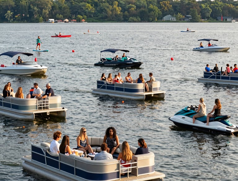 Fireworks over the lake, viewable from boats or lakefront spots.