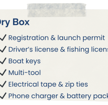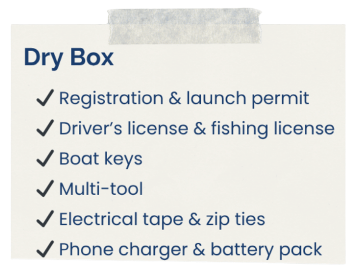 Keep your lake days simple. This checklist covers what to keep on your boat, what to carry in your dry box, and what to prep before you leave.